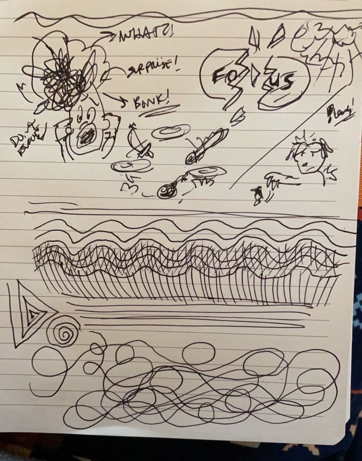 She shared her impulse to handle her racing mind in school by doodling, and in our next session we incorporated it into the session. The first time looked like: